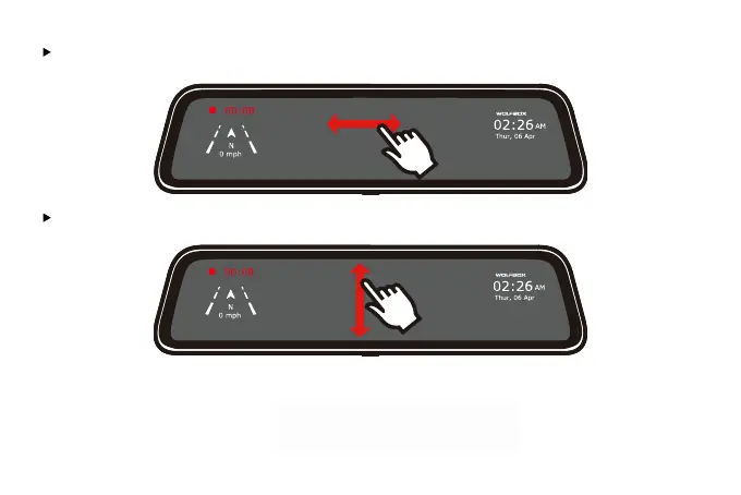 Swipe left and right to switch between front view, rear view and split screen