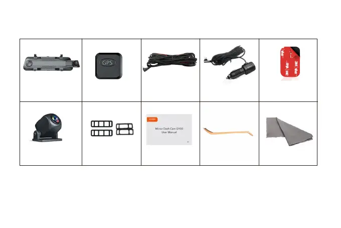 hardware kit (for parking monitoring and replacement chargers), rear camera extension cable,