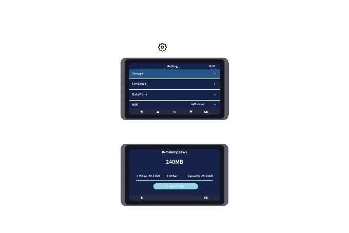 Wolfbox i07 - MENU SETTINGS: STORAGE & SYSTEM; Storage Settings