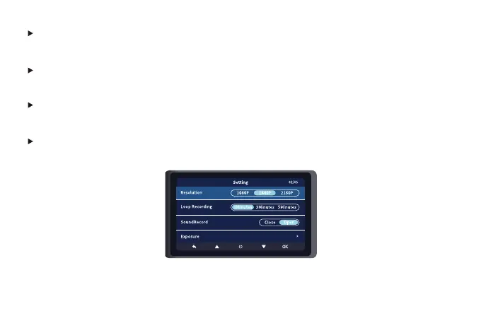 Wolfbox i07 - MENU SETTINGS: RECORDING & DISPLAY; Resolution & Loop Recording