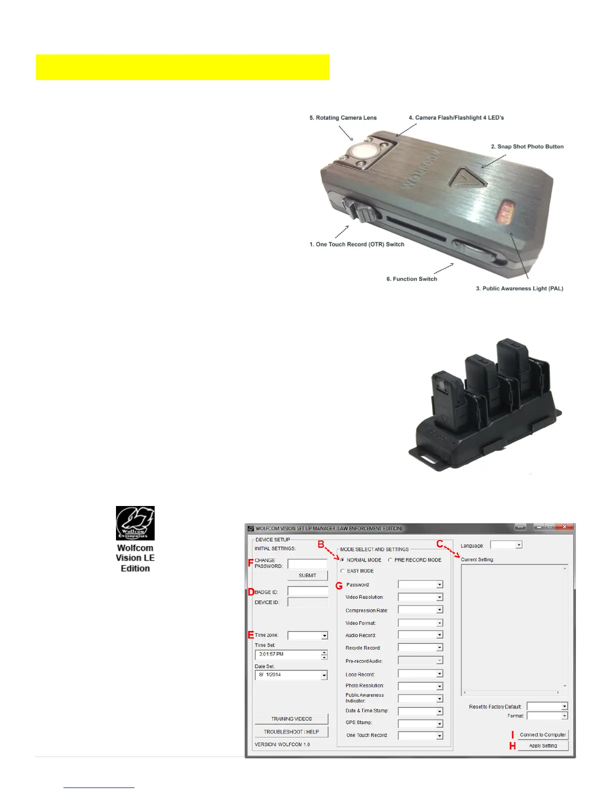 If your unit came with a docking station, insert the Wolfcom Vision into