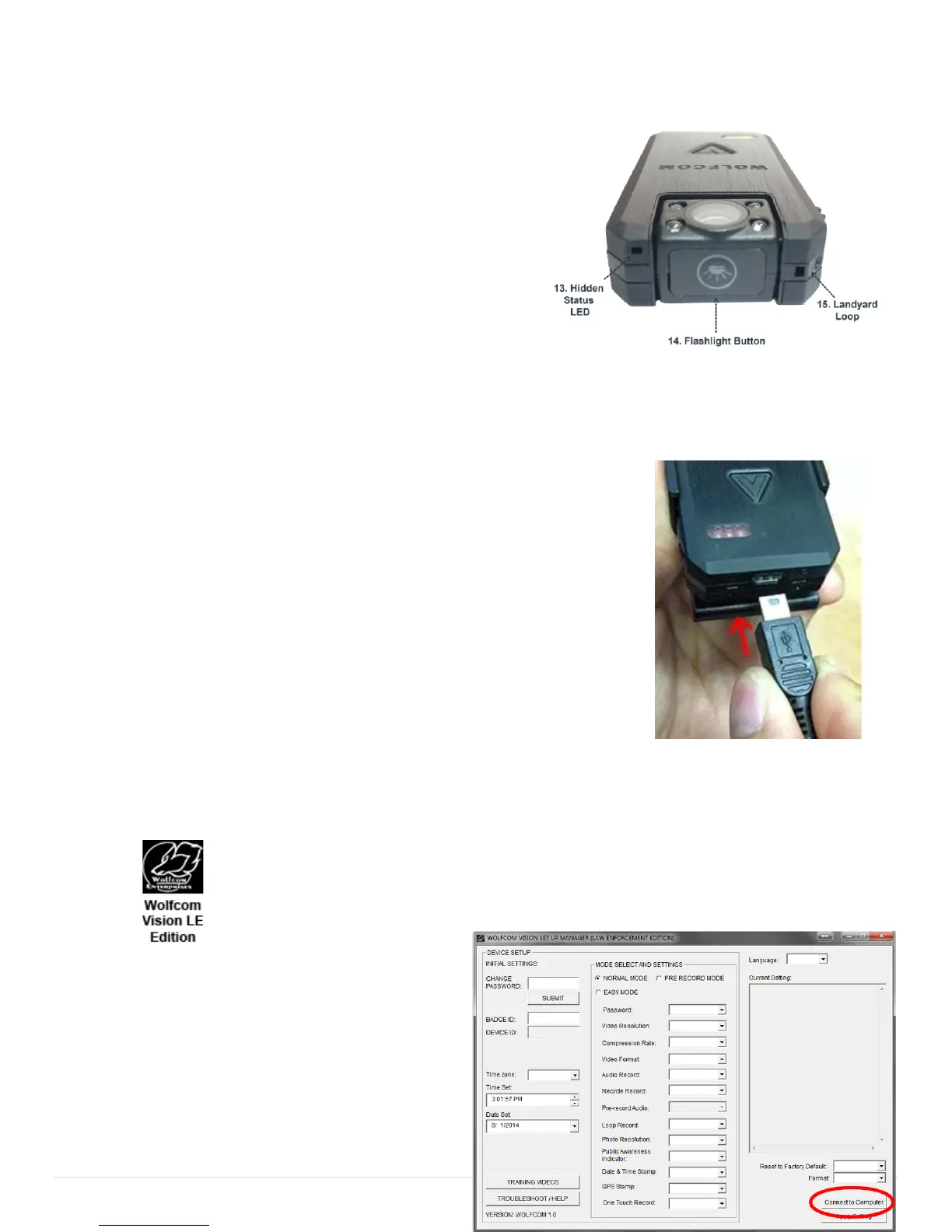 If your unit came with a docking station, insert the Wolfcom Vision into any