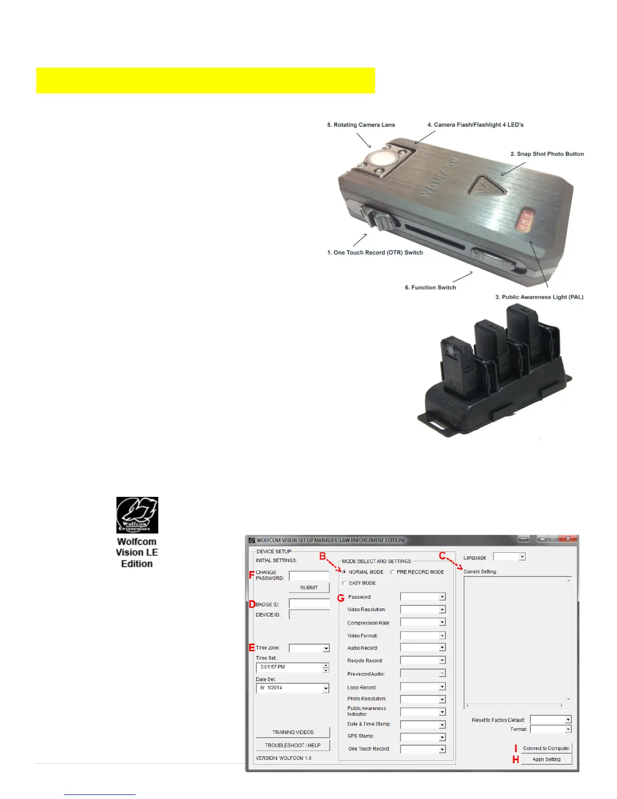 If your unit came with a docking station, insert the Wolfcom Vision into any