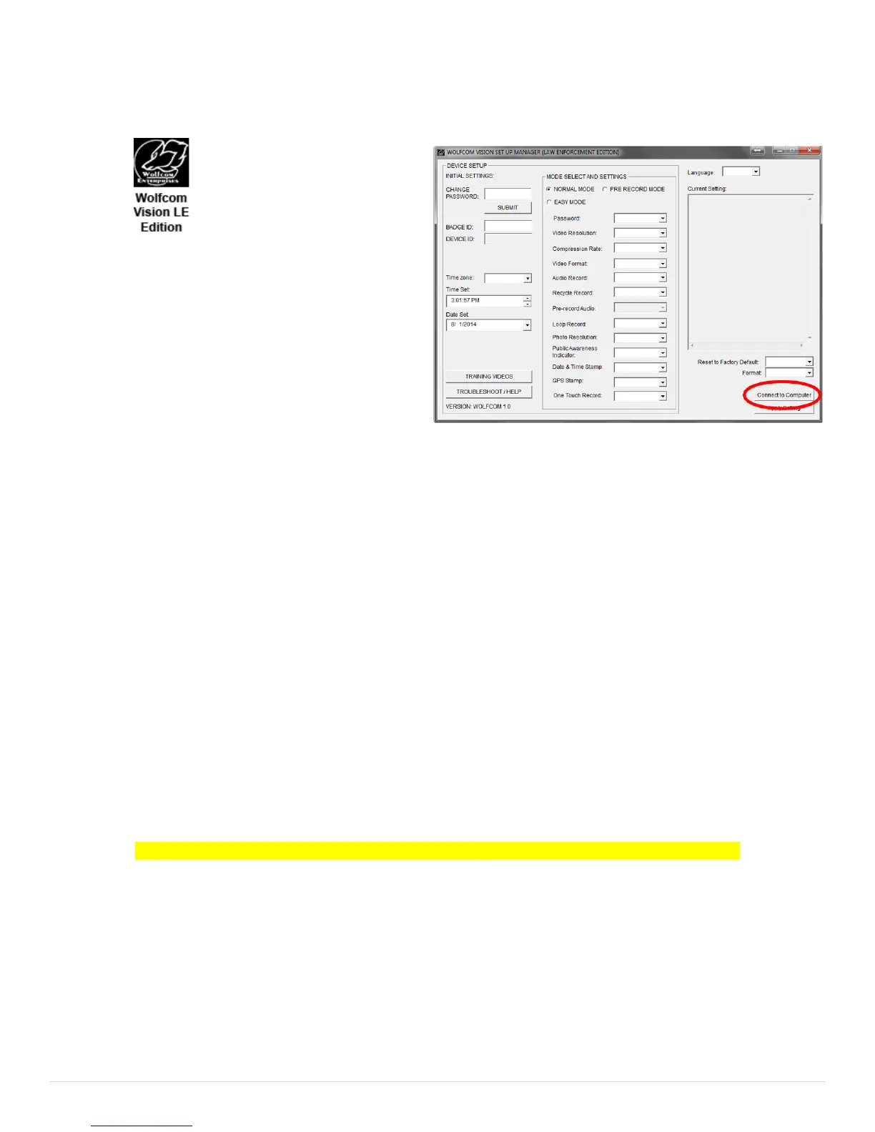 5. On the Wolfcom Vision Setup Manager window. Click on the "Connect to Computer" button on the button