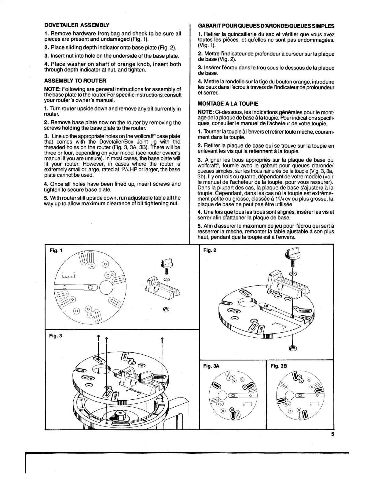 Wolfcraft 4250 - Jig Assembly and Router Mounting; Dovetailer Assembly Steps; Assembly to Router Instructions