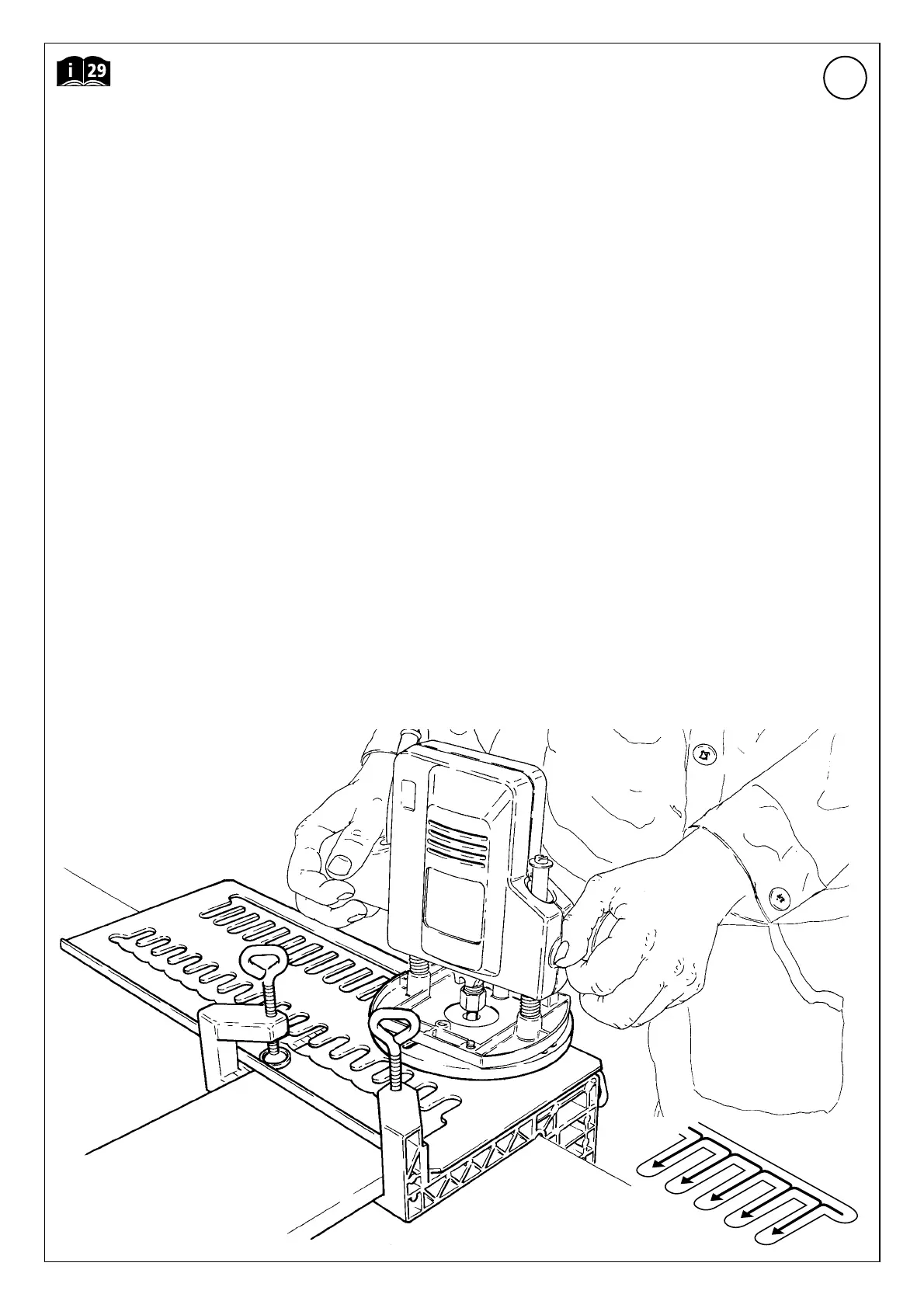 Inserire la fresatrice e portarla attraverso la sagoma. A fresatura ultimata, spegnere la fresatrice, attendere che I’utensile sia fermo e poi sollevare la fresatrice