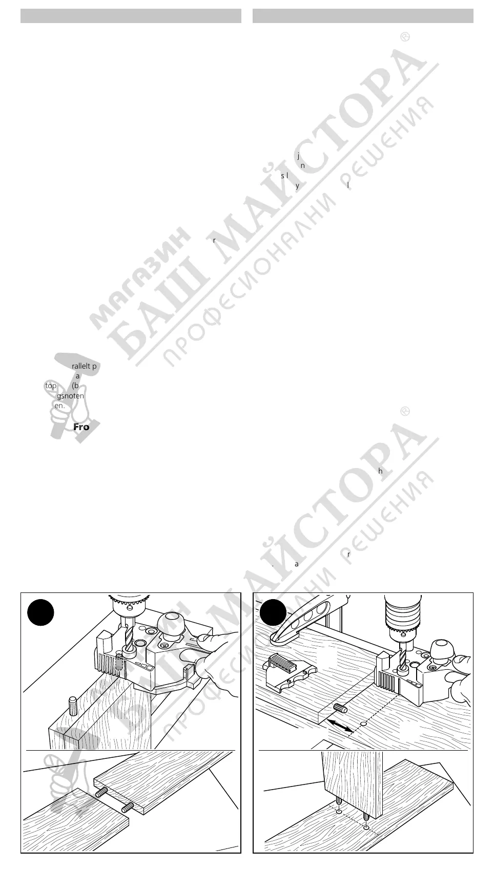 Superposez la planche A sur la planche B. Engagez le gabarit de perça-