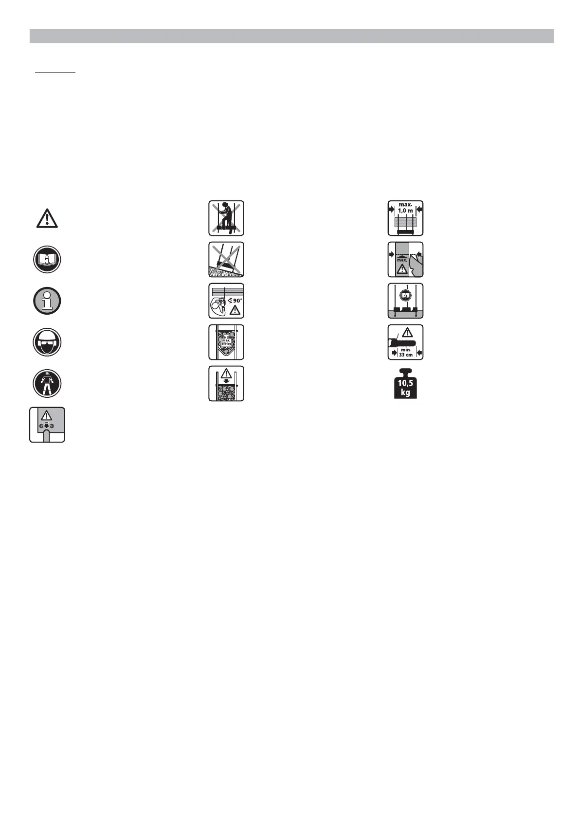 • Achten Sie darauf, dass Sie selbst und die verwendeten Maschine immer einen sicheren Stand haben.
