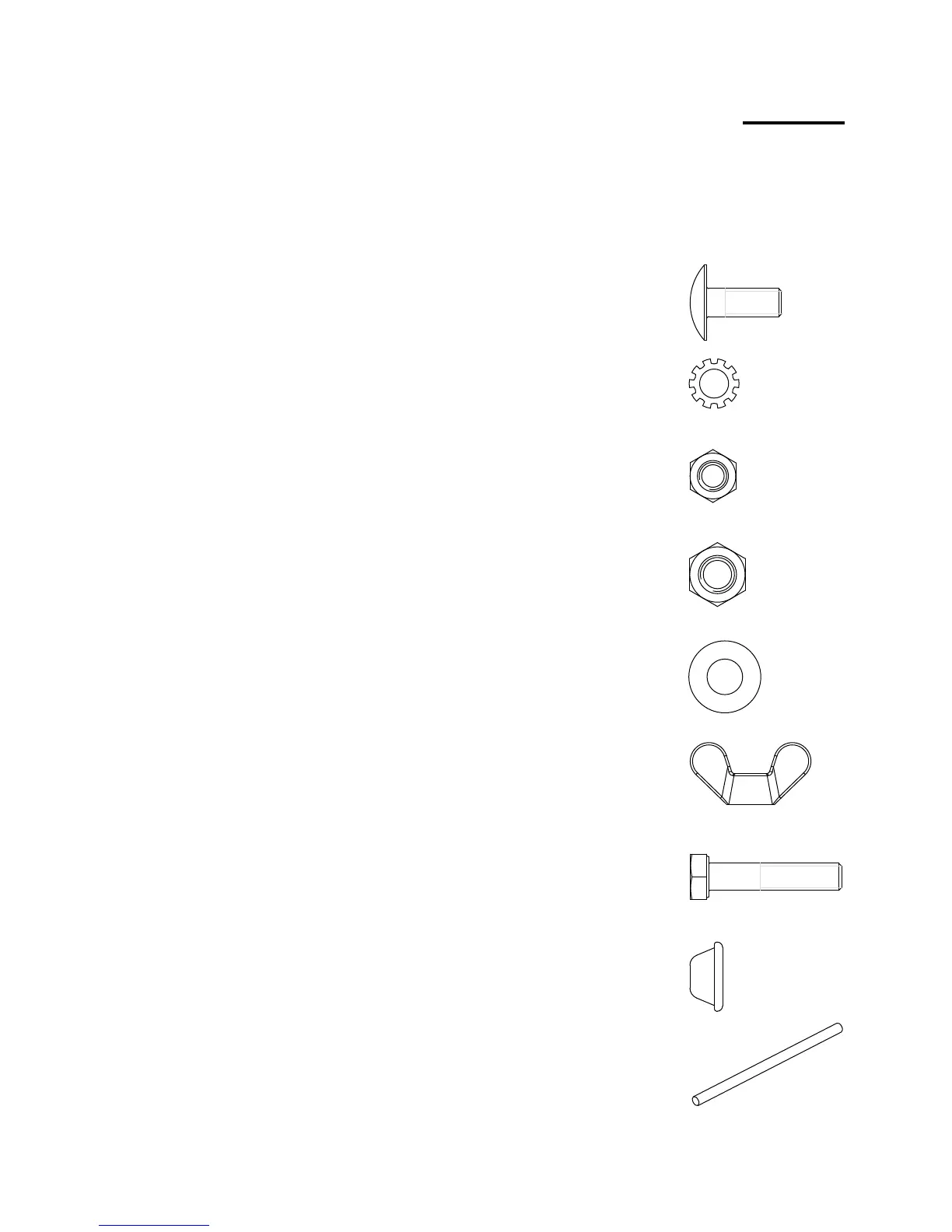 NOTE: Hardware parts (screws, nuts, washers) shown are actual size.