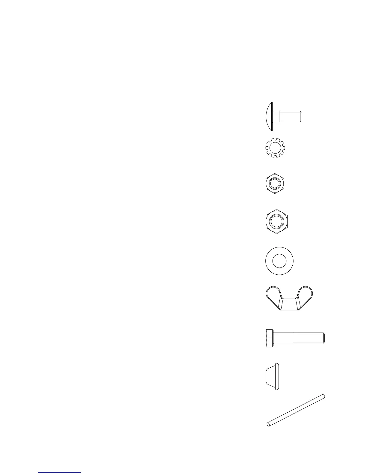 REMARQUE : Les pièces (vis, écrous, rondelles) sont illustrées en dimension réelle. Sauf indication contraire, toutes les