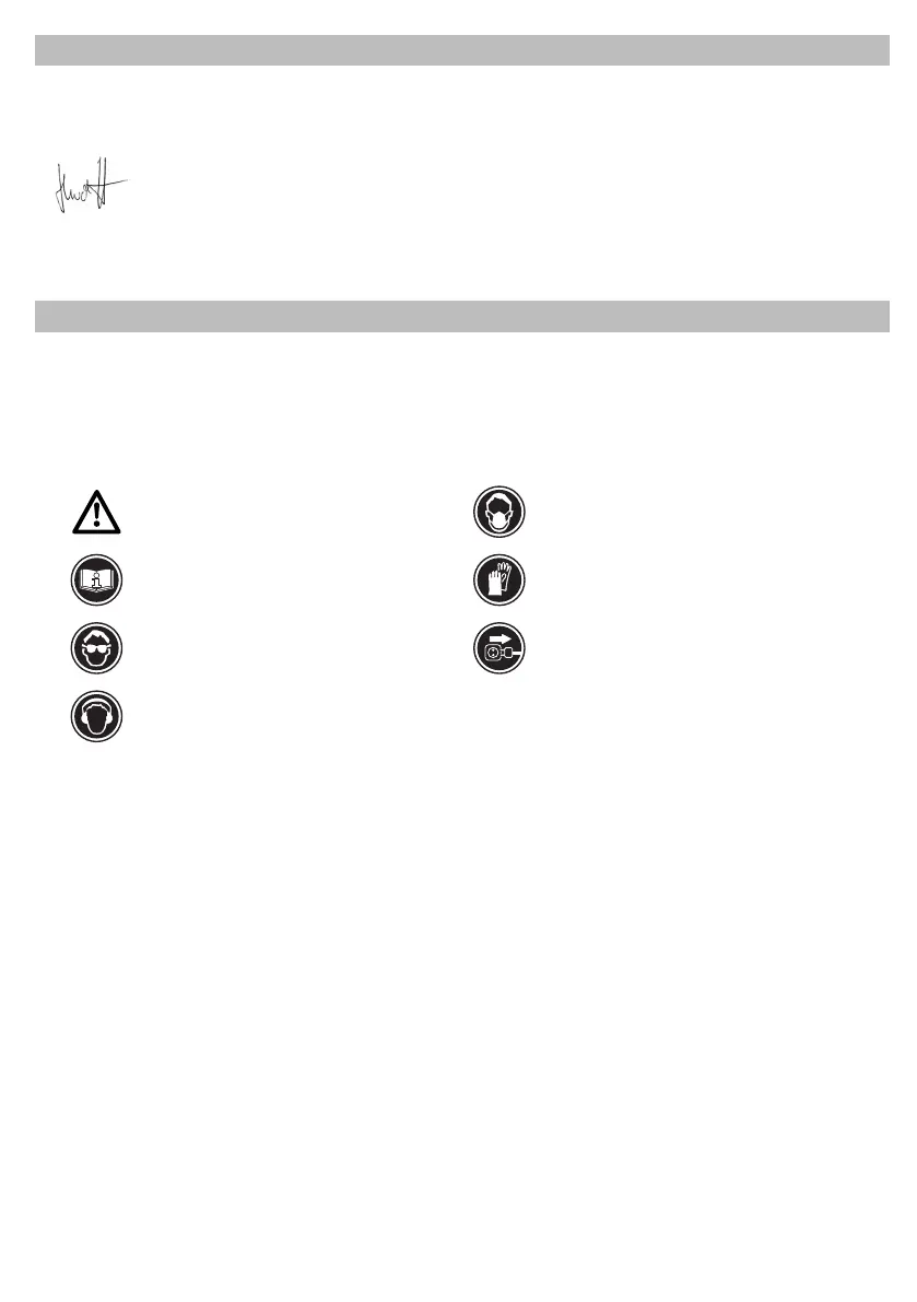 • Protect your ears when carrying out work which pro duces a high level of noise.