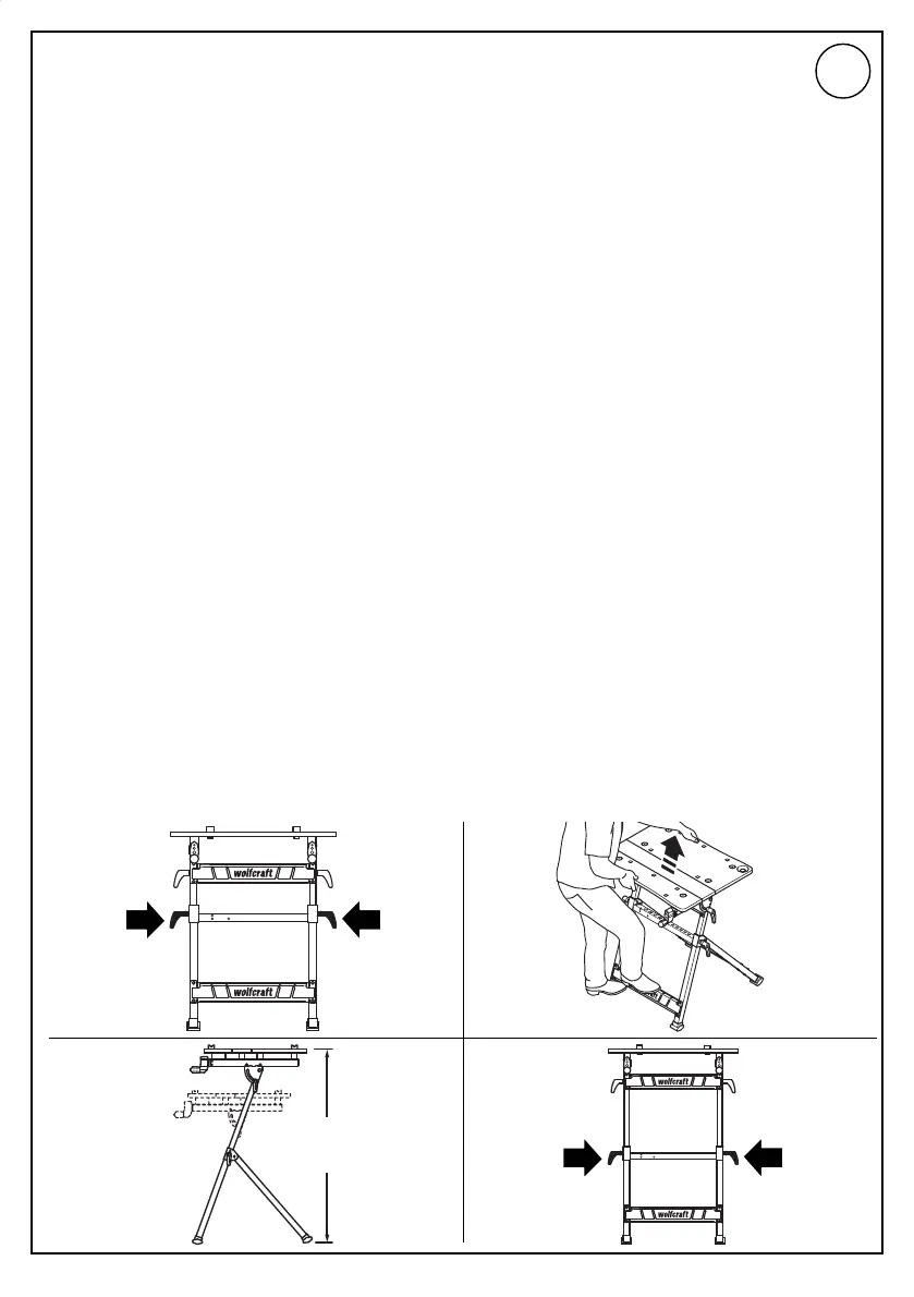 vastdraaien. Gebruik als machinetafel uitsluitend in de onderste stand.