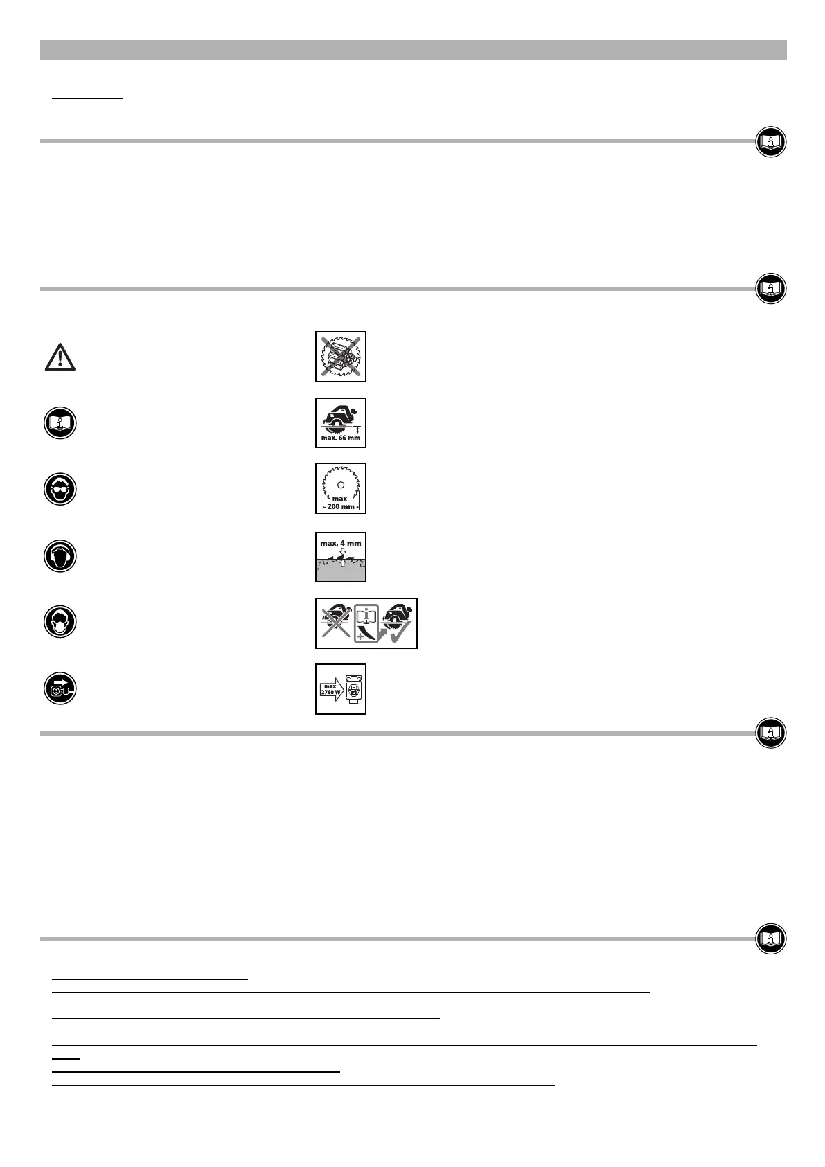and a maximum cutting depth of 66 mm. Do only use saws within the above maximum dimensions of the base plate (see Fig. 3.1).