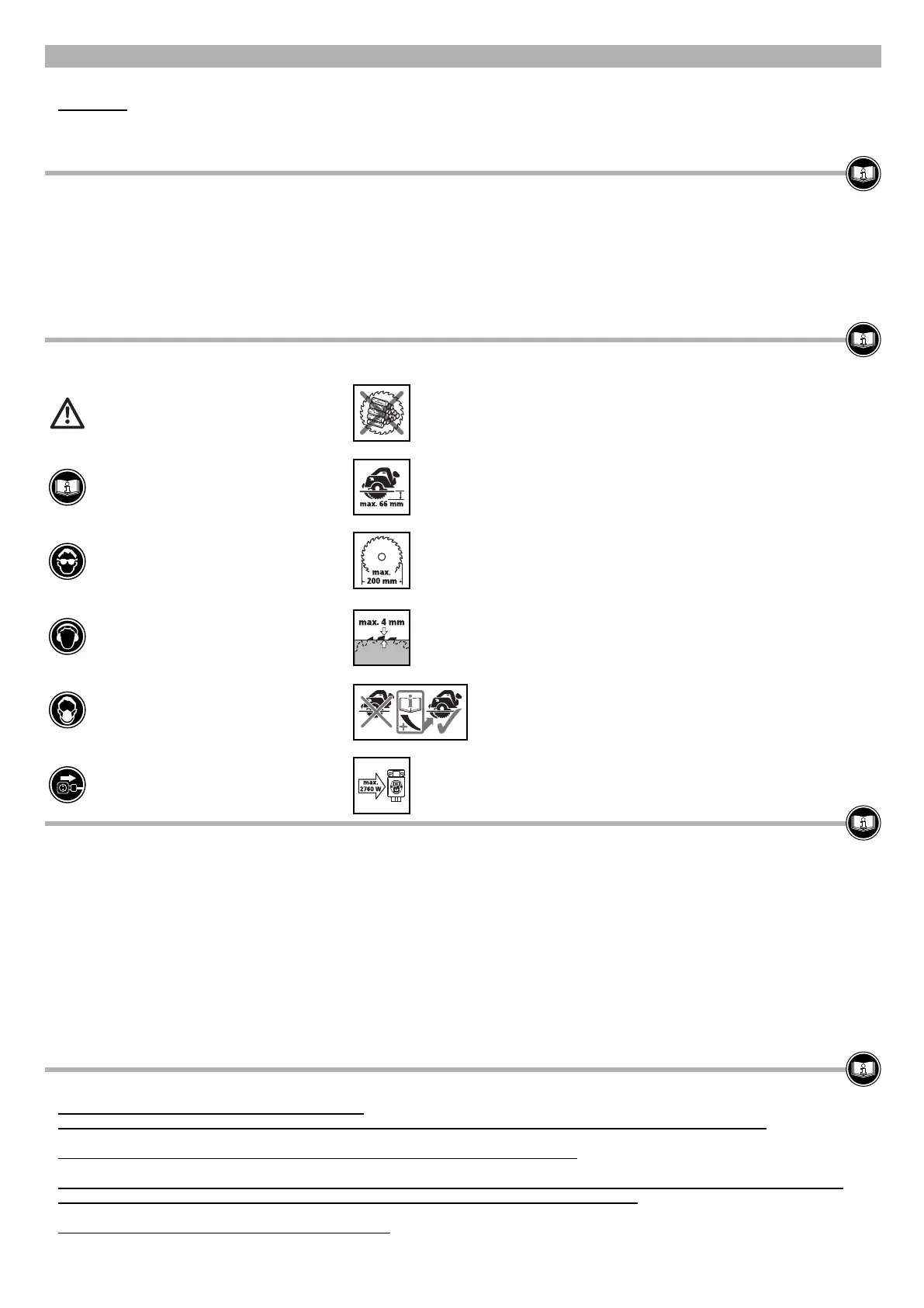 profundidad de corte máxima de hasta 66 mm. Utilice sólo sierras compatibles con las dimensiones máximas de la placa para herramientas