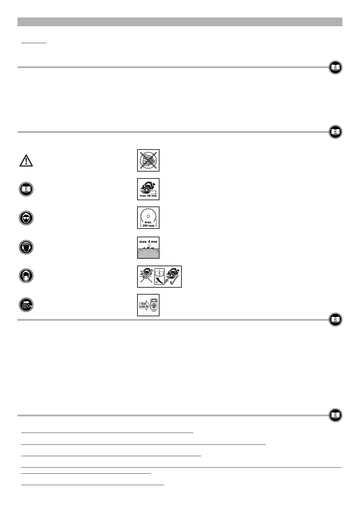 μέγιστο βάθος κοπής 66 mm. Χρησιμοποιείστε μόνο λεπίδες κοπής μέχρι τις ανωτέρω μέγιστες διαστάσεις της πλάκας βάσης ( Βλέπε εικ. 3.1 ).