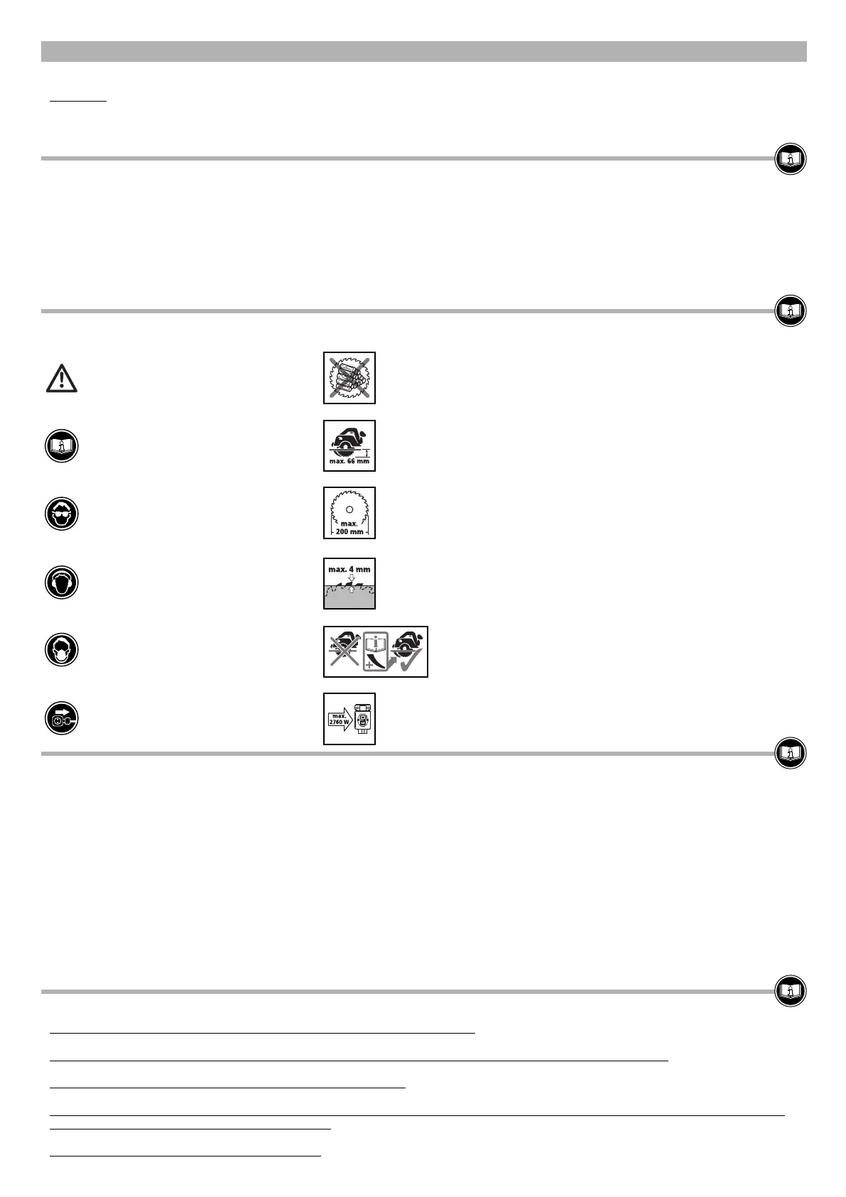 • Допускается установка циркулярной пилы на рабочую платформа с максимальным диаметром диска 200 мм и глубиной реза макс. 66 мм.