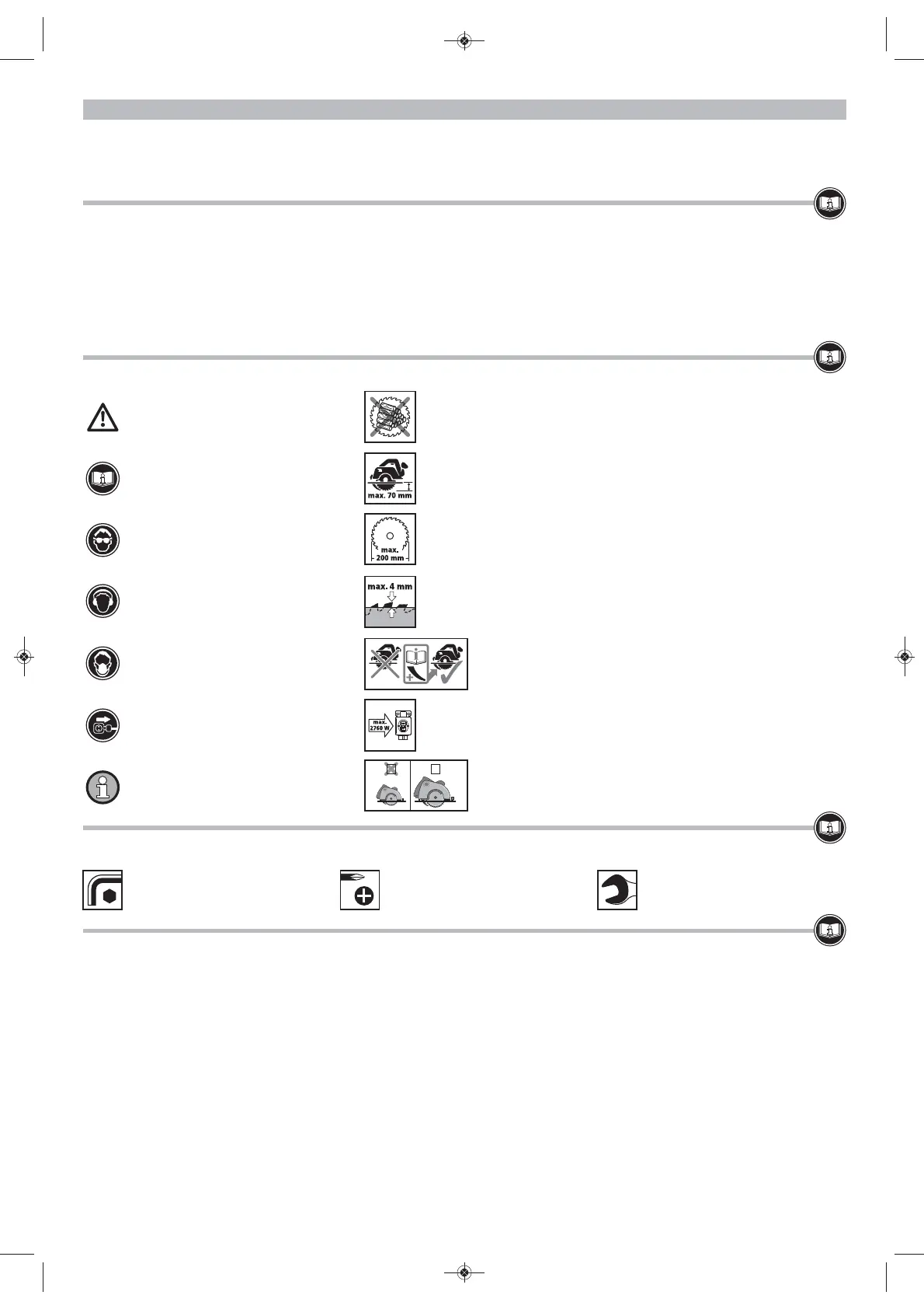 • Montering av en håndsirkelsag med kløyvekniv på maskinplaten, med maks. sagbladdiameter på 200 mm og maks. kuttedybde på 70 mm. Ikke