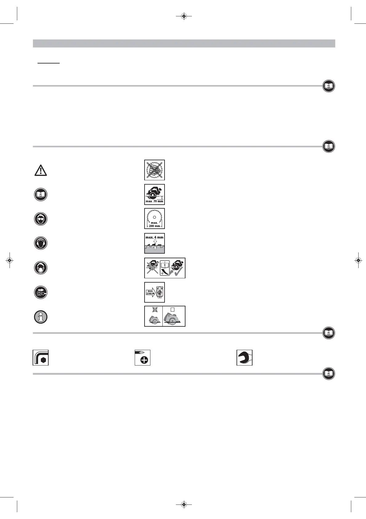 • die Montage einer Handkreissäge mit Spaltkeil auf der Maschinenplatte mit max. 200 mm Sägeblattdurchmesser und bis max. 70 mm Schnitttiefe.