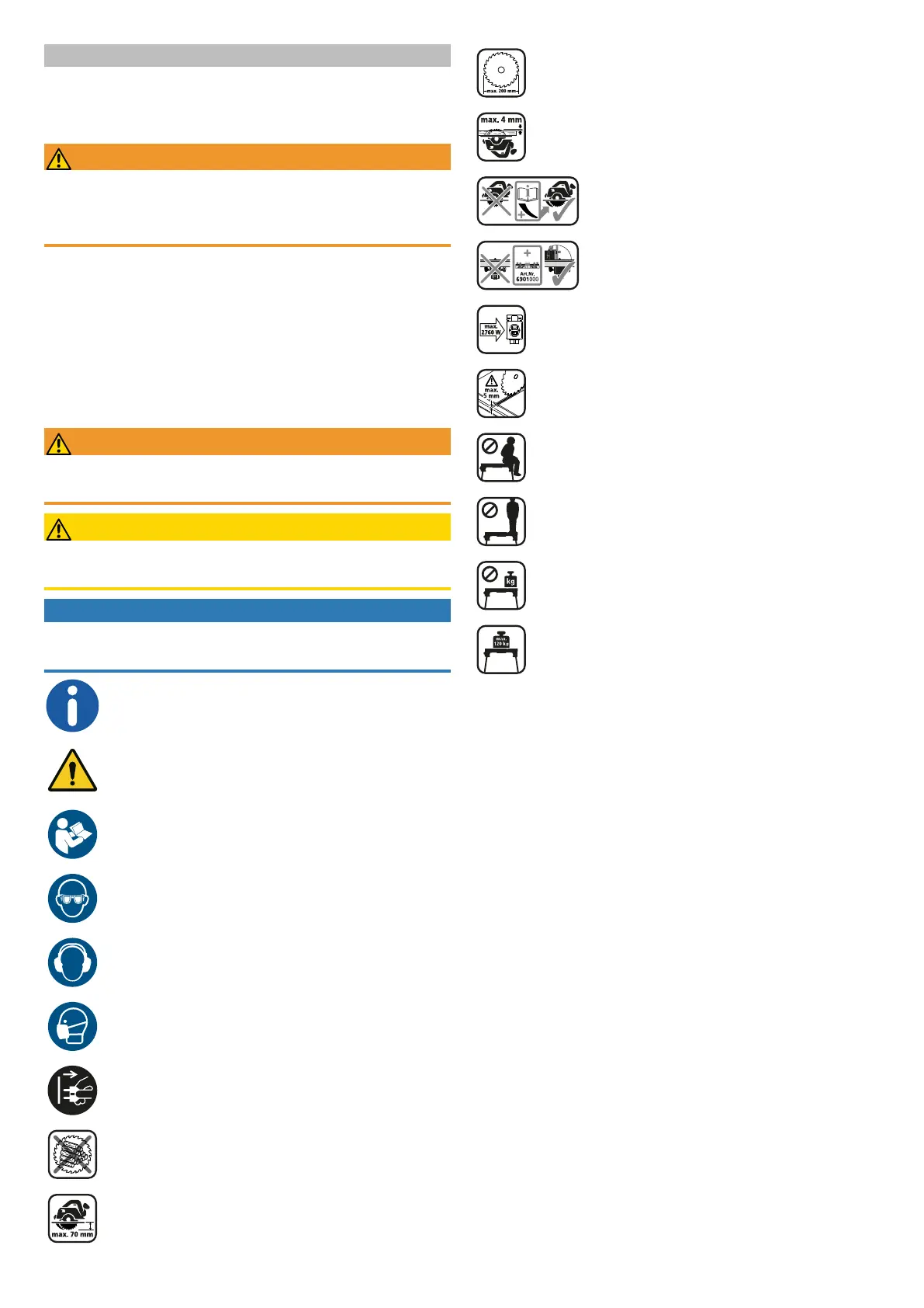 Use only circular handsaws with a max. saw blade diameter of 200