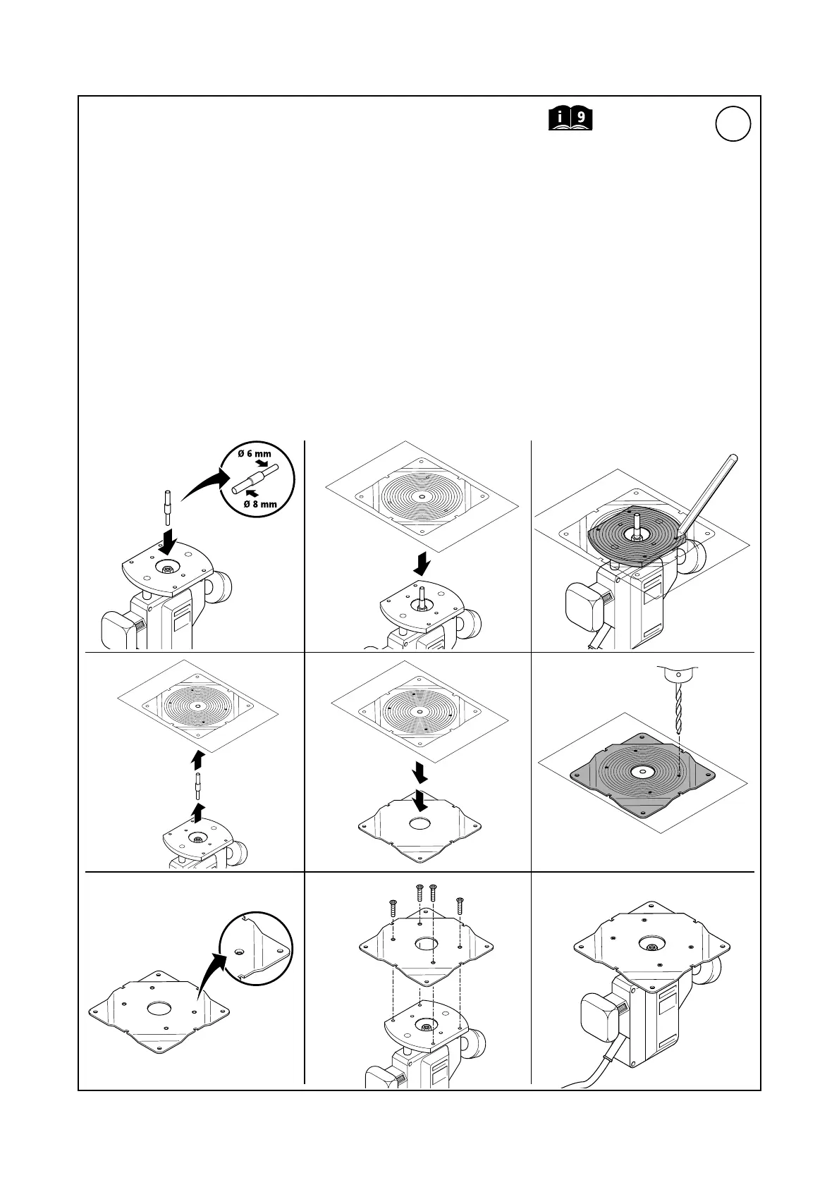 N Hvis opptaket av overfreseren din ikke skulle passe i de ferdige hullene til fresebordet, bruker du vennligst vedlagt adapterplate med boresjablon.
