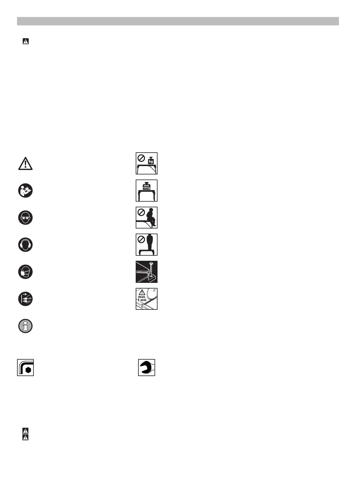 • Je třeba řídit se jak údaji od výrobců a bezpečnostními pokyny k používaným strojům, tak i bezpečnostními pokyny k tomuto stolu.
