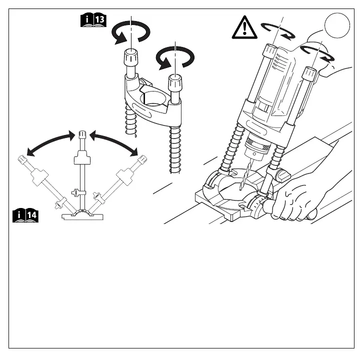 l 6.1 Odkręcić śruby z gałką o co najmniej 2 obroty, 6.2 Podziałka co 5°, 6.3 Dokręcić śruby z gałką