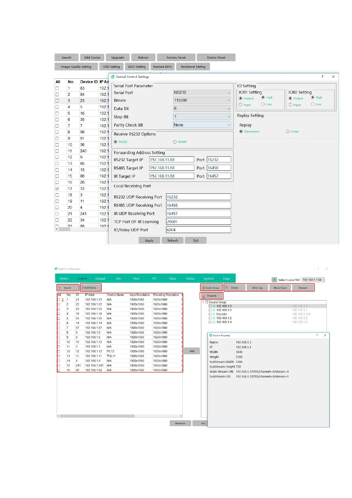 Source: after setting the device IP/ID/working type as encoders, then add them as sources: