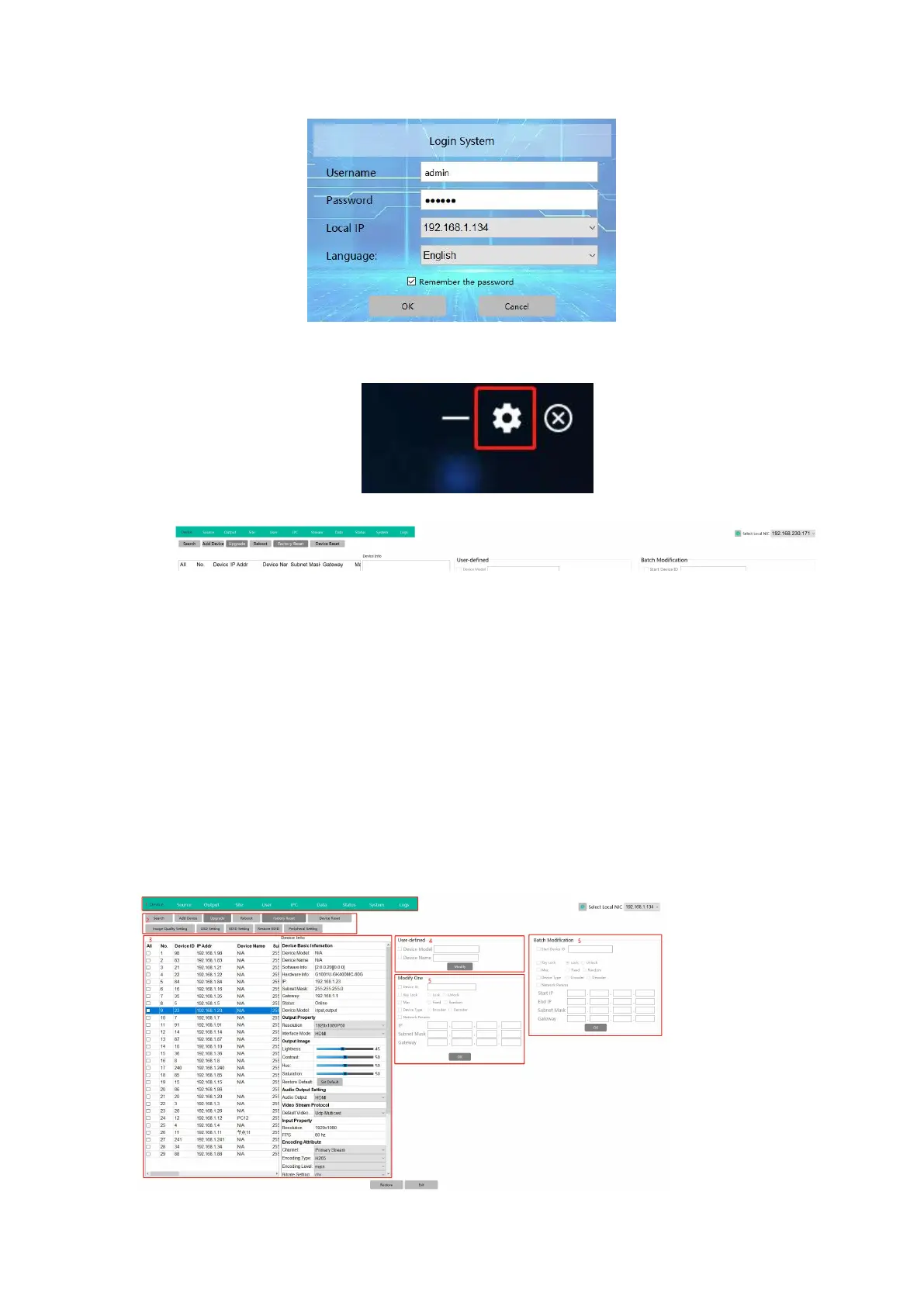 Output: after setting the device IP/ID/working type as decoders, then add them as
