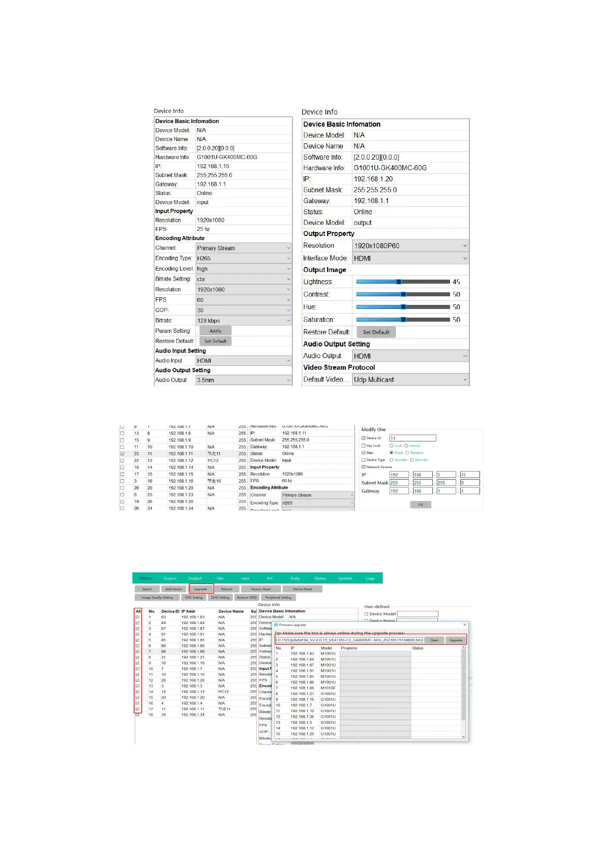 name/ID/IP/work type(as encoder or decoder)/resolution/audio