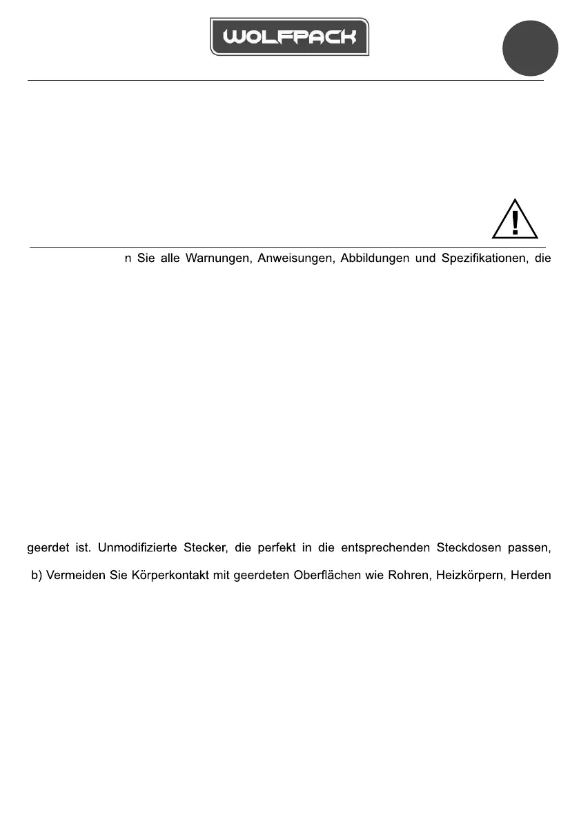 Stecker in irgendeiner Weise. Verwenden Sie keinen Steckeradapter, wenn das Elektrowerkzeug