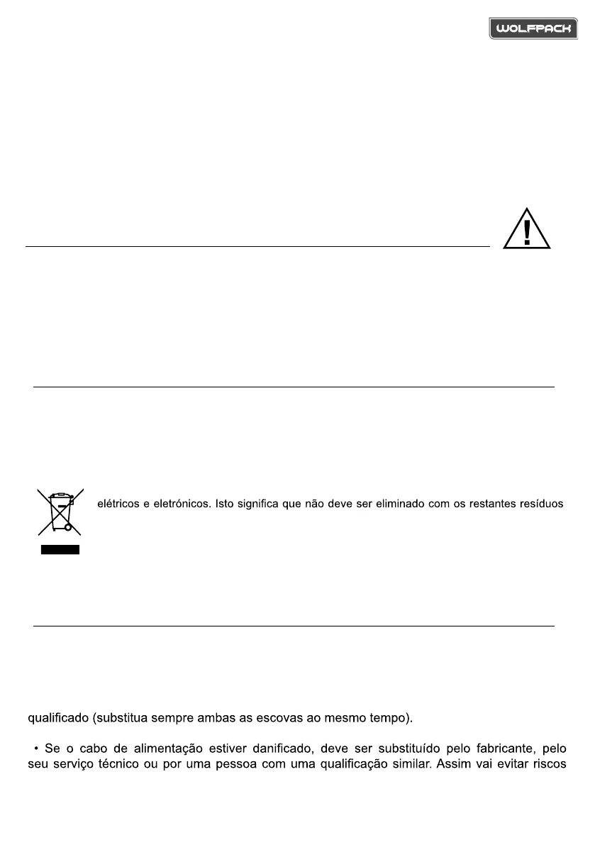 • A eventual substituição das escovas de carbono deve ser realizada por um reparador