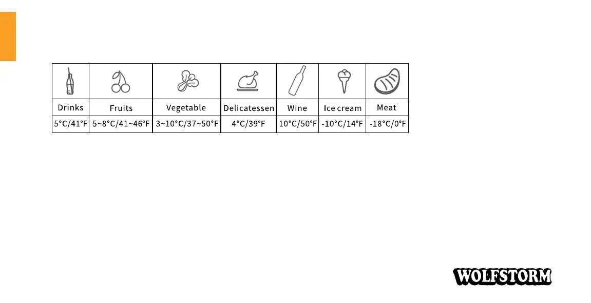 RECOMMENDED TEMPERATURE FOR COMMON FOOD: