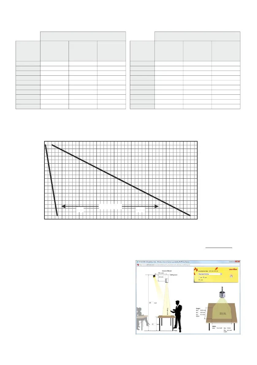 The following chart shows the connection between distance from the Visualizer to the table and image size