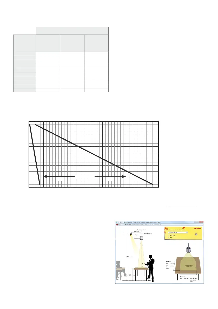 Die folgende Tabelle zeigt den Zusammenhang zwischen dem Abstand des Visualizers zum Tisch und