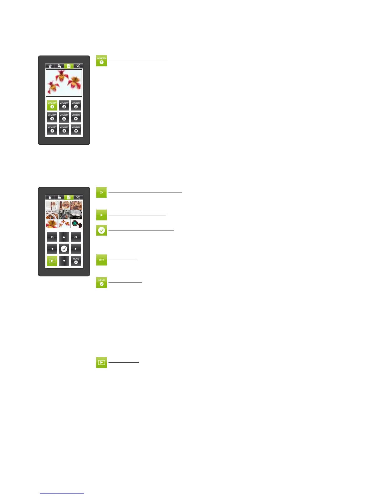 Kurzes Tippen auf ein MEMORY Icon ruft dessen gespeichertes Bild auf (siehe Seite