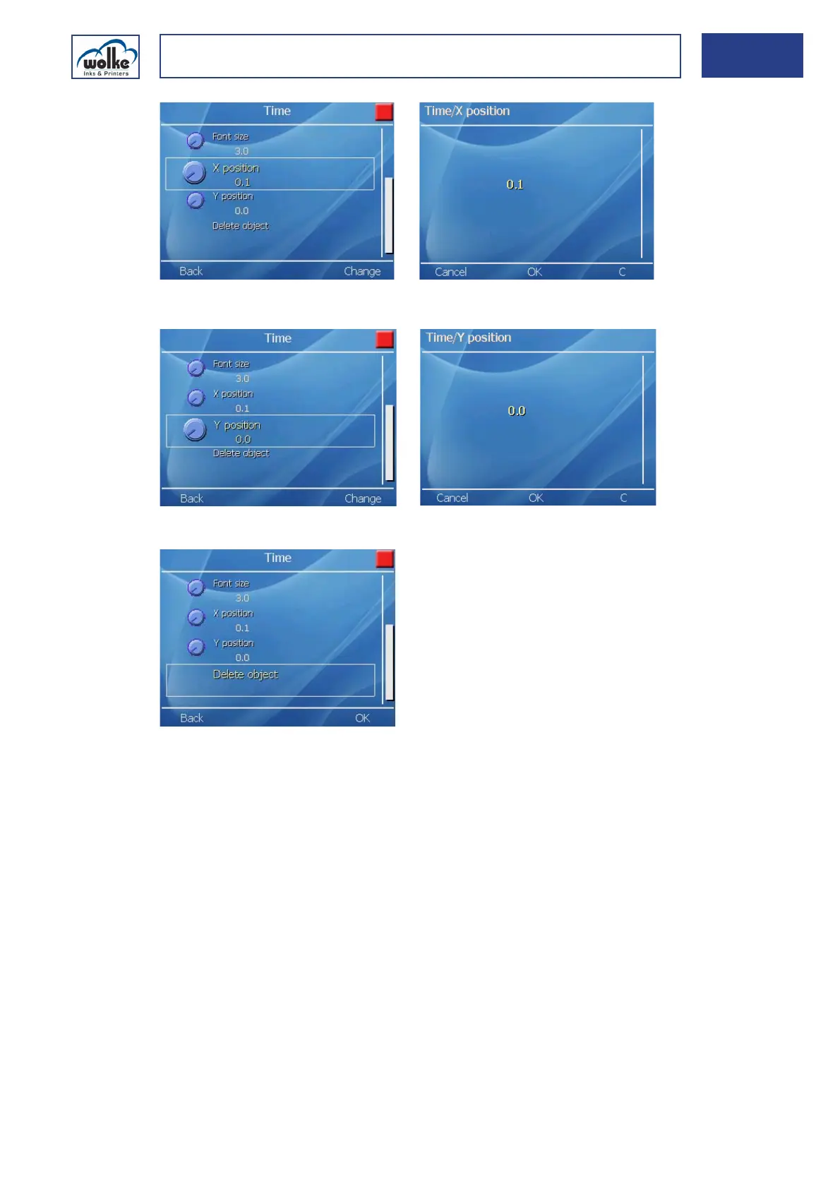 wolke m600 basic - Fig. 7_168: Time - X Position; Fig. 7_169: Time - y Position; Fig. 7_170: Delete Time Field