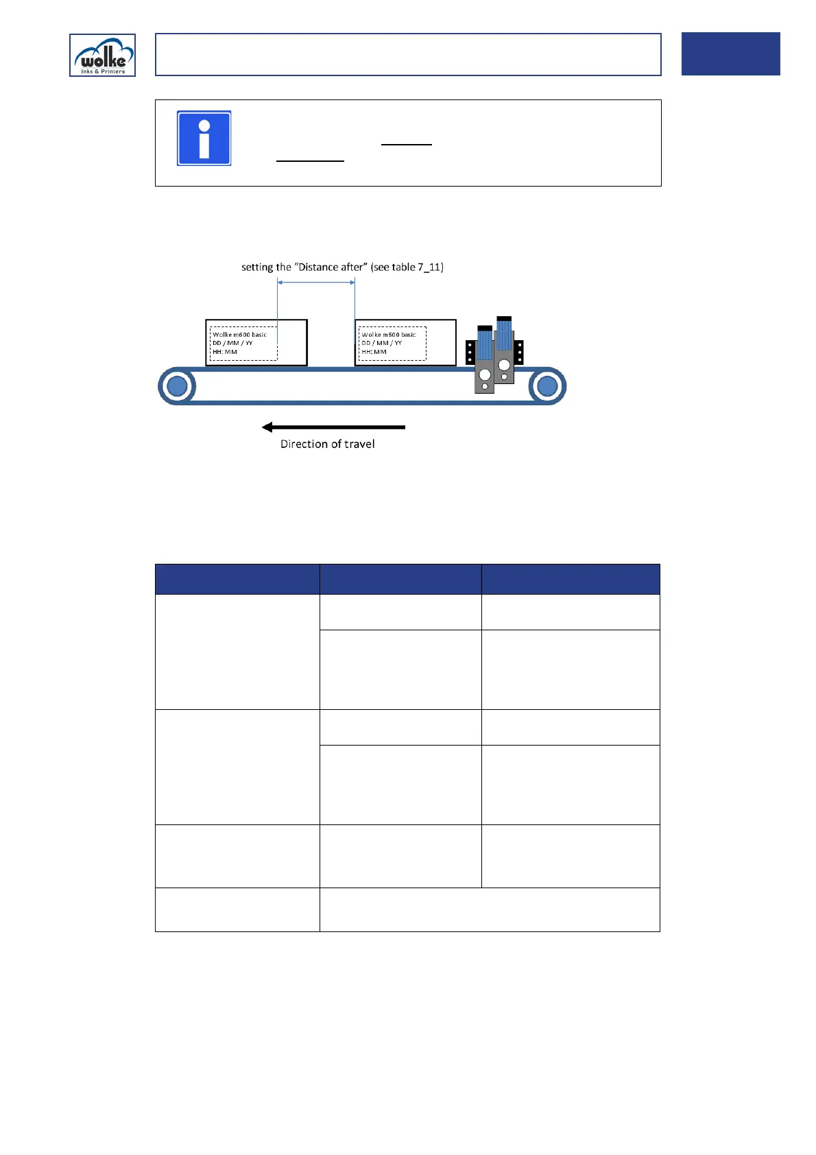Tab. 7_12: Setting the „Distance after“ regarding the speed and data volume