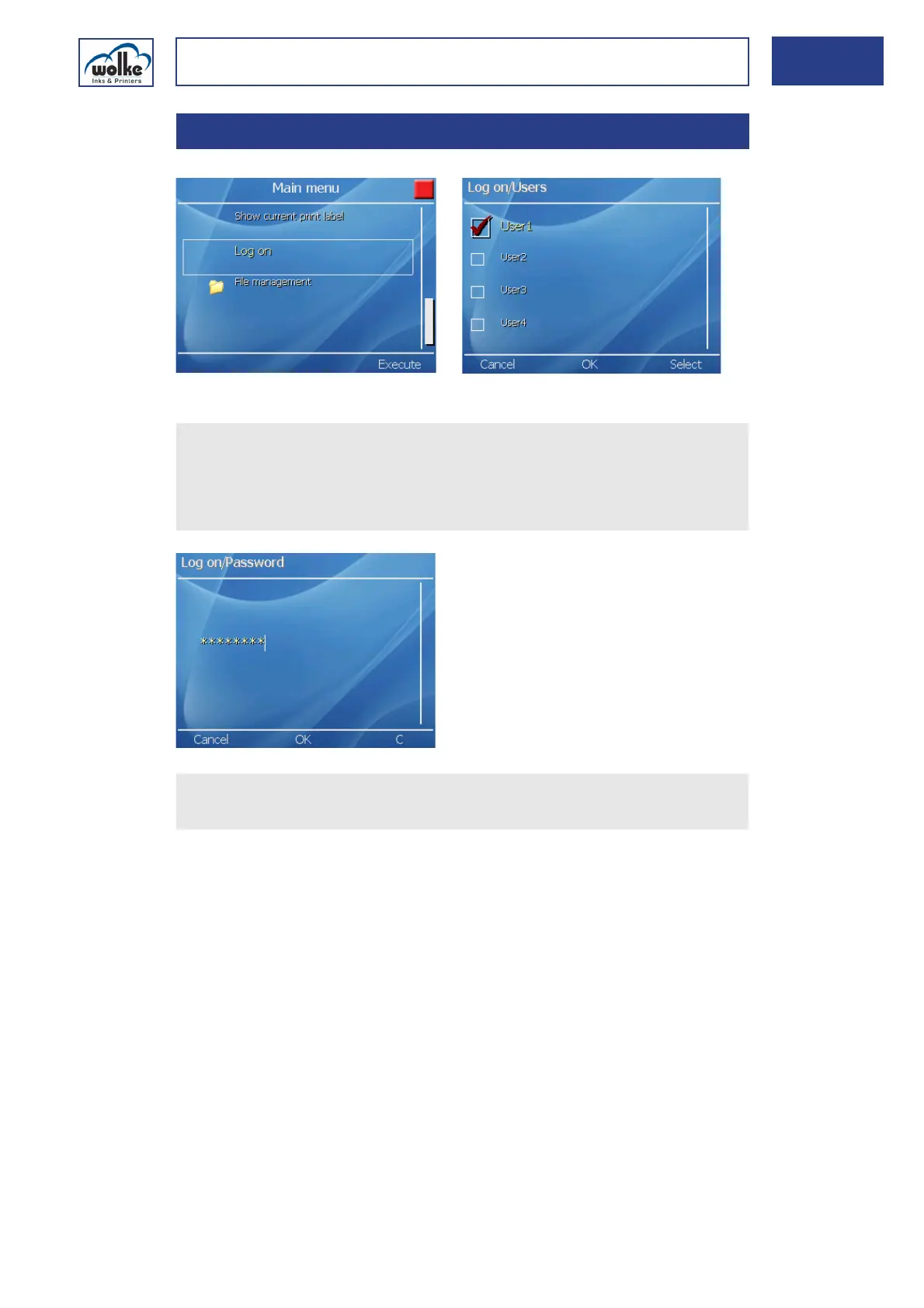 Confirm by pressing "OK". Now, you are logged on. The main menu