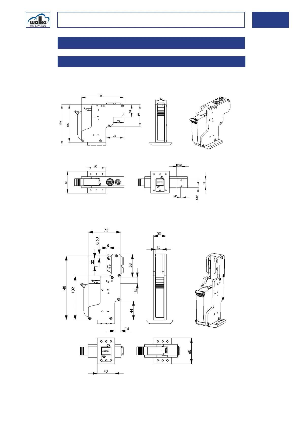 wolke m600 basic - Technical Data and Specifications; Technical Drawings of Print Heads and Components