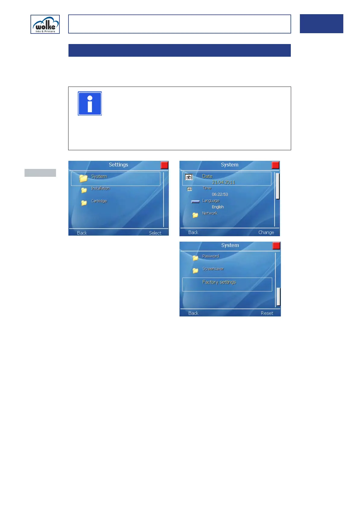 Here, the system language of the m600 basic is set (see Chapter 6.1.3).