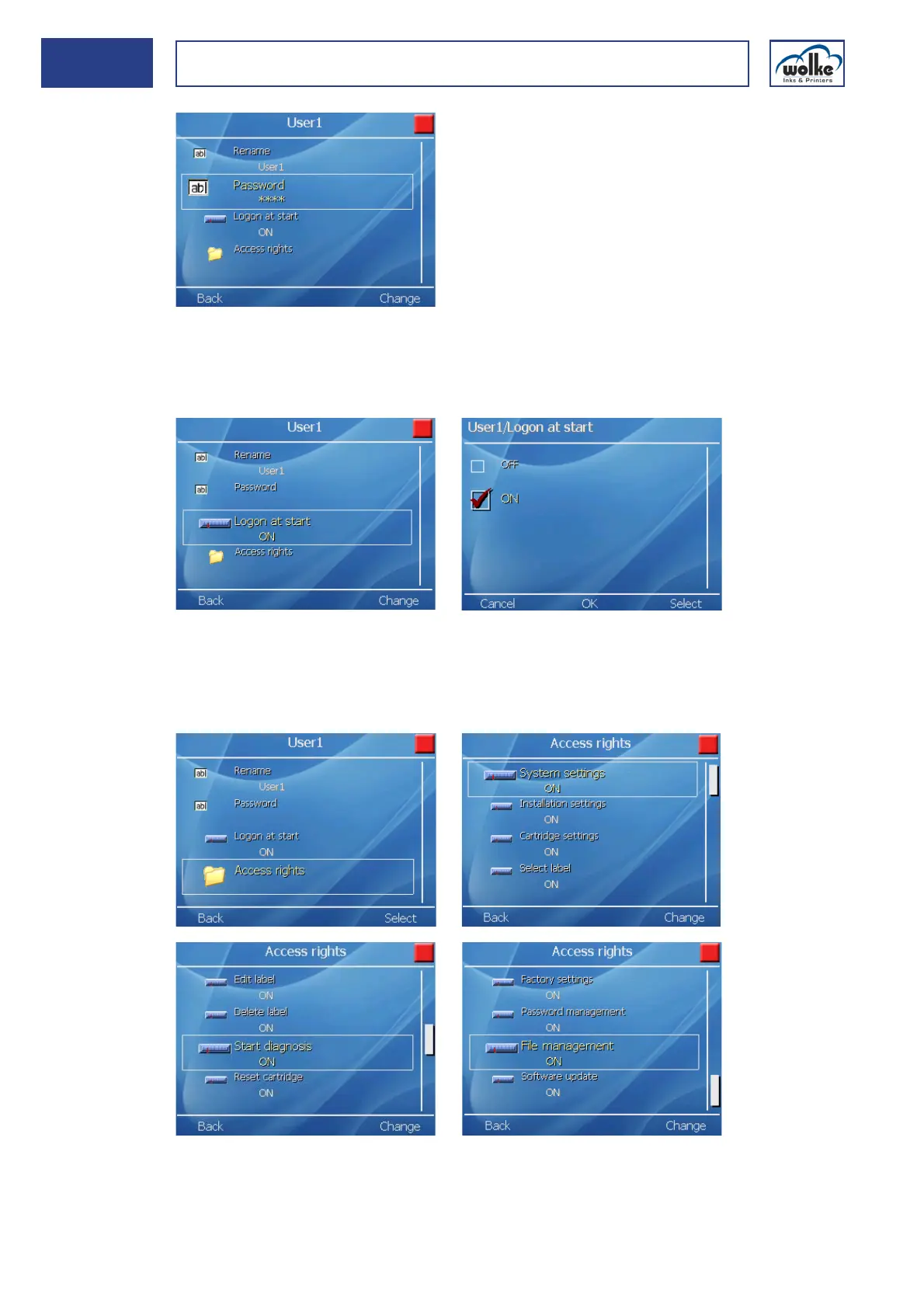Password Assigning or changing access rights: