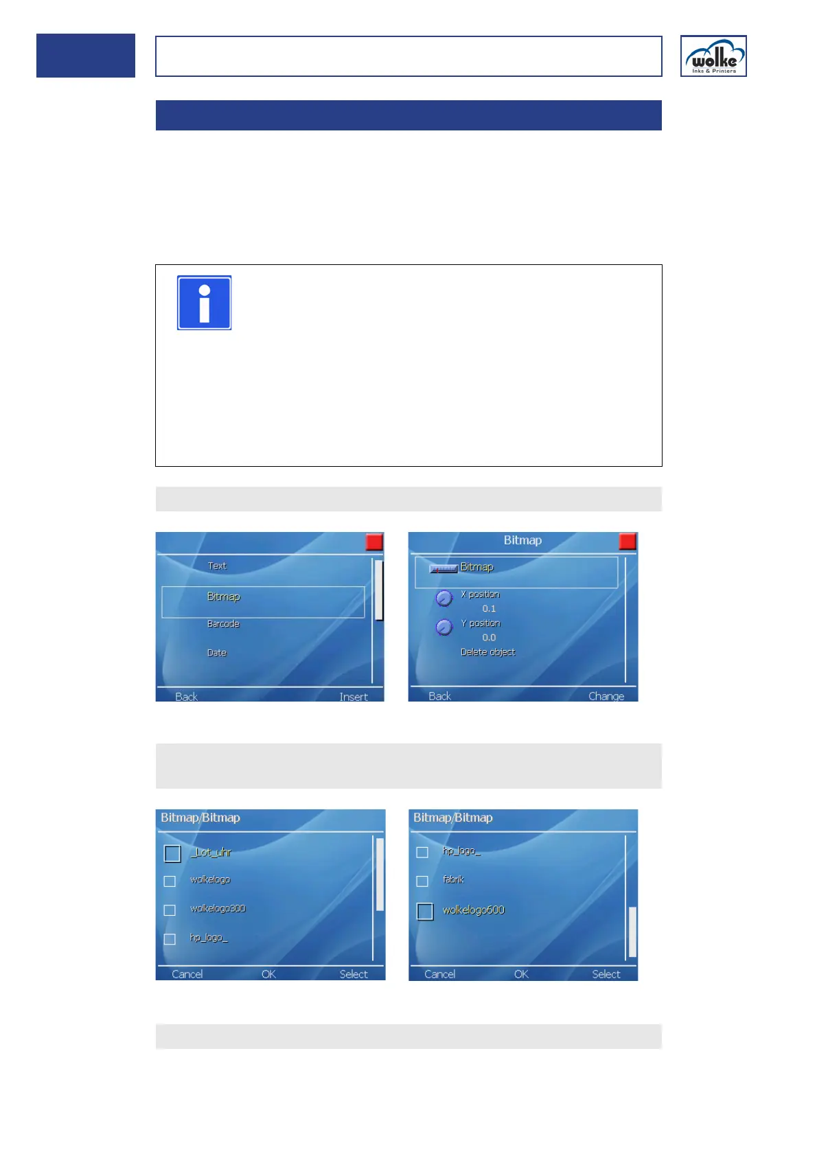 Bitmap This menu item allows you to select logos and graphics (bitmaps) which