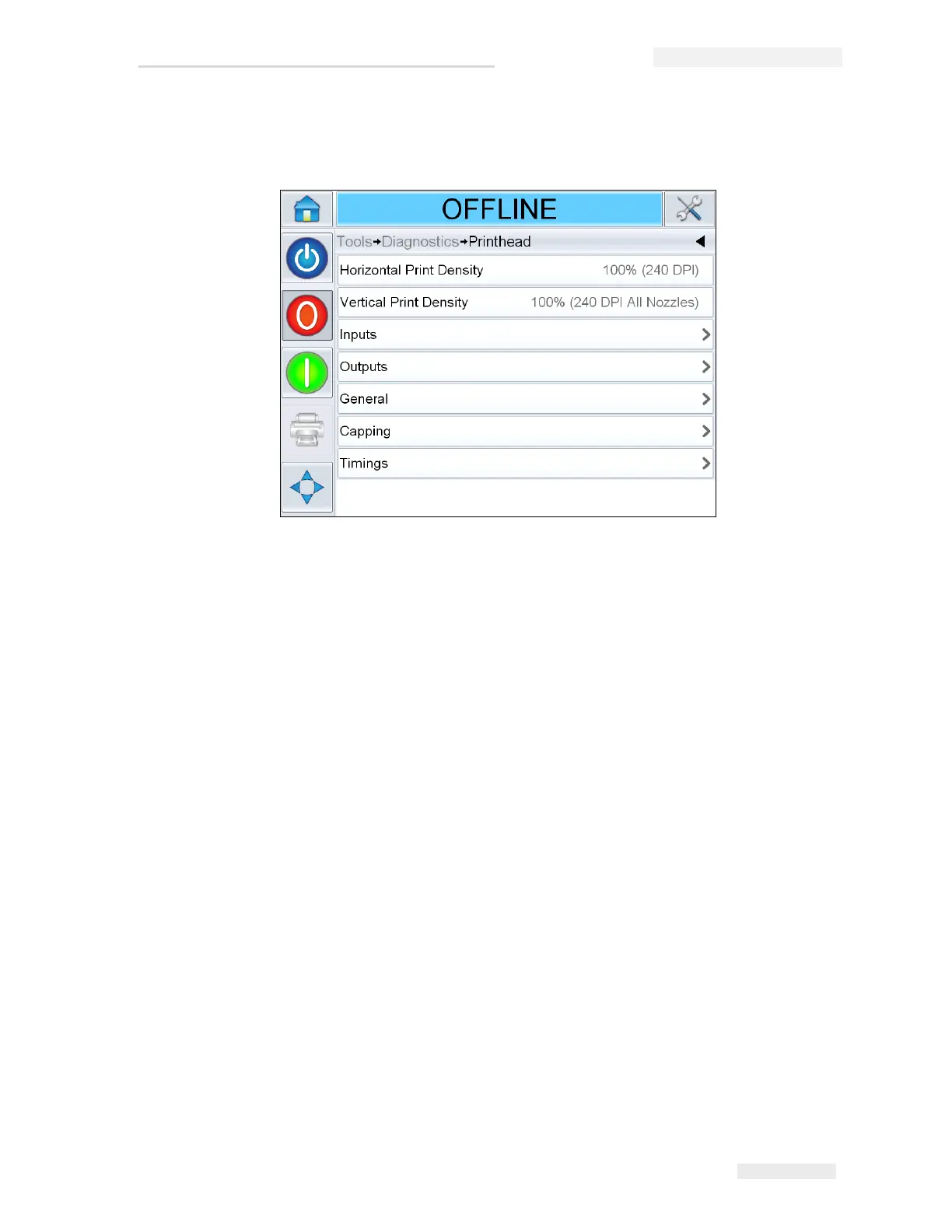 Navigate to Tools > Diagnostics > Printhead (see Figure 4-8).