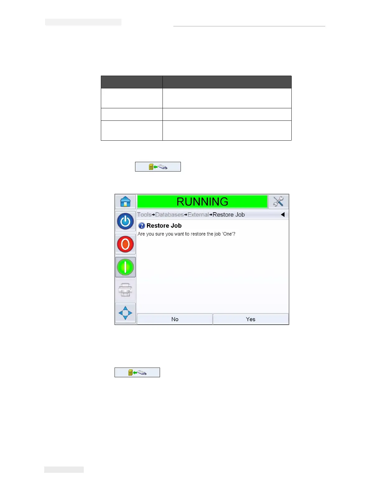 Note: To restore all Jobs from the USB Memory Stick at one time, do not