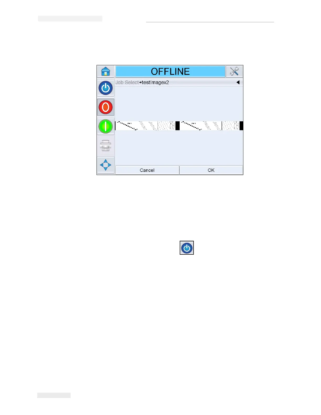 3 Touch OK, and the Home screen displays the newly loaded Job name.