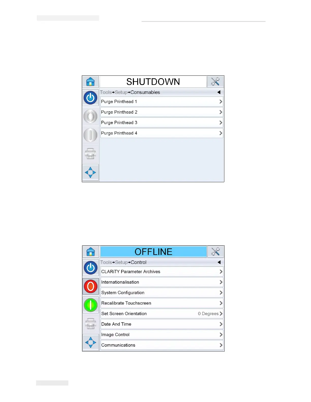 Purge Printhead 1-4: Allows the user to purge the printhead. For more