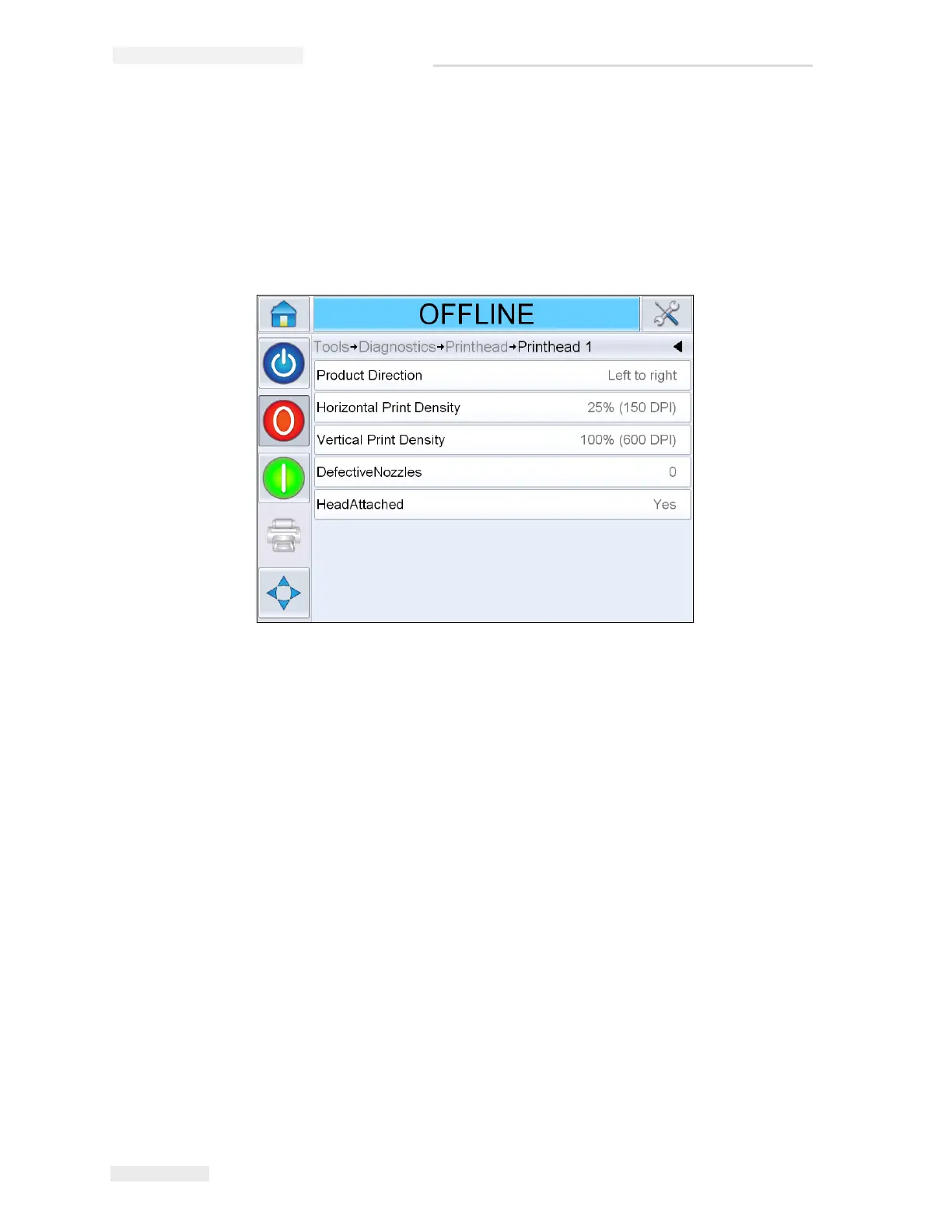 find the faults.Navigate to Tools > Diagnostics > Printhead > Printhead 1