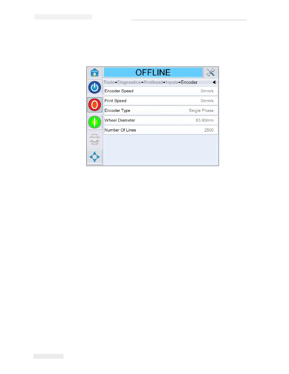 •Encoder: Touch the Encoder button to access the Encoder diagnostics