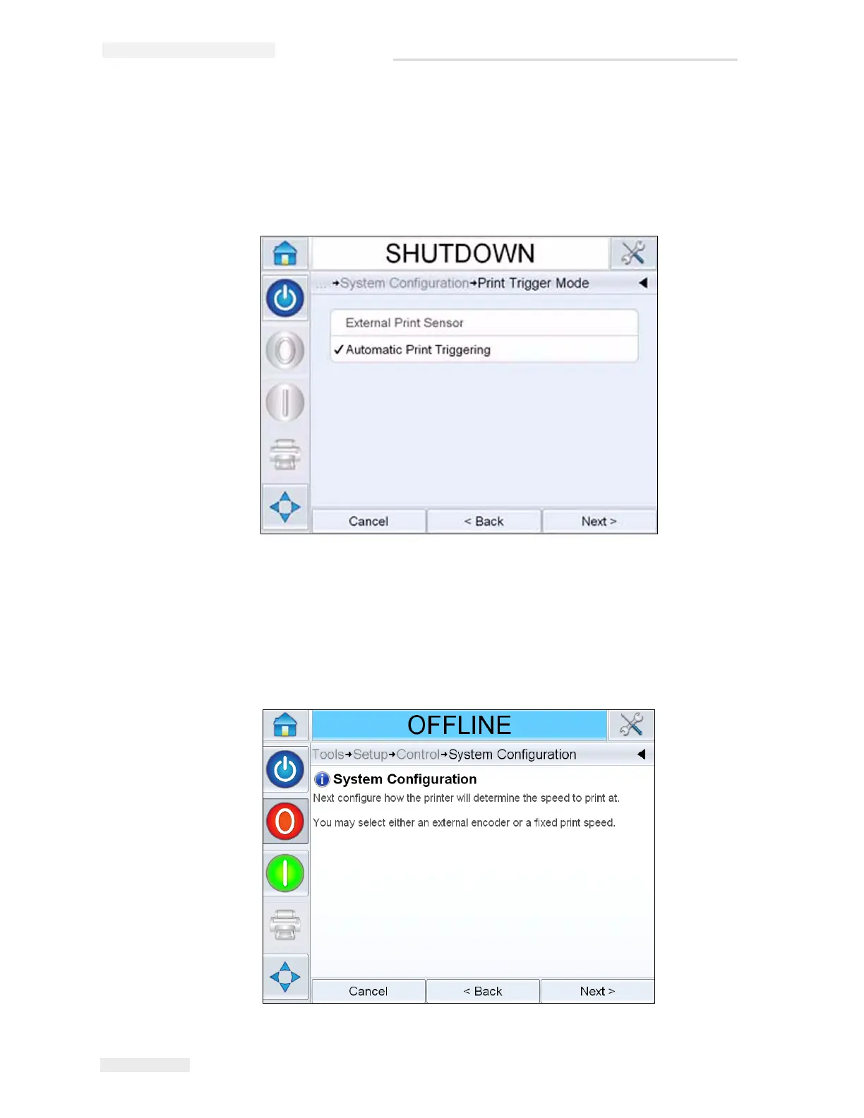 6 Touch Next, to set up the print trigger mode.