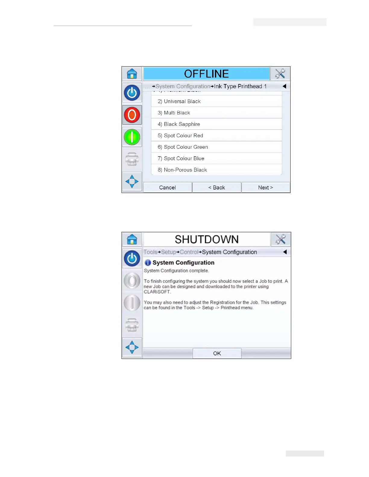 8 Configure the ink type for each printhead.